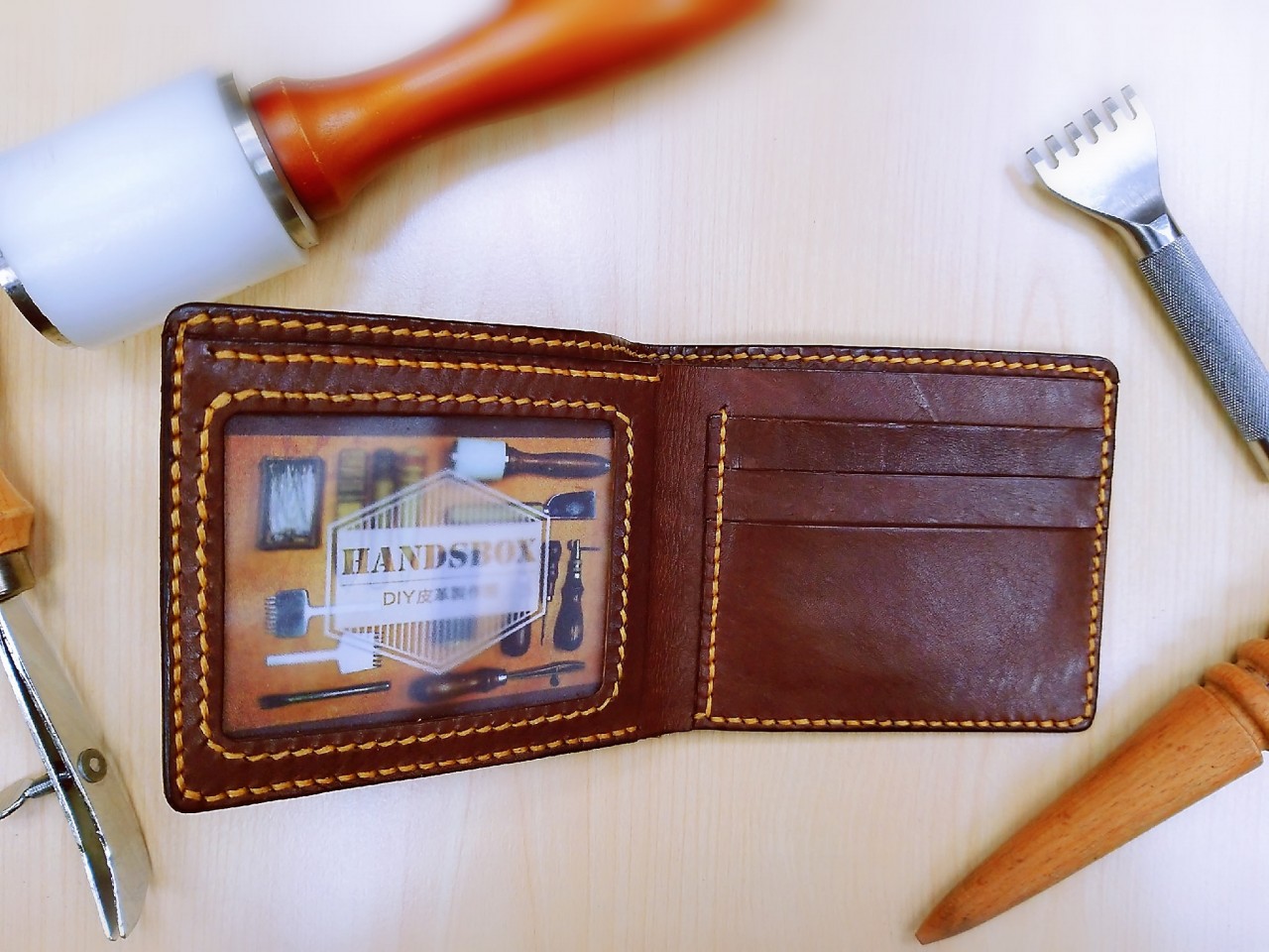 商品:三卡相片短銀包 - 手縫皮革材料包