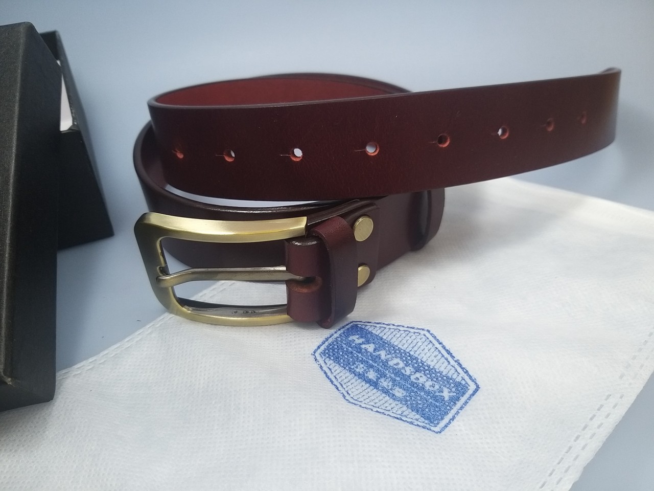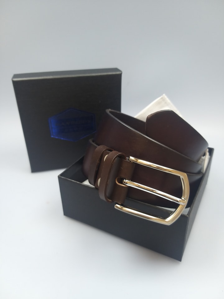 皮帶,採用意大利進口A級頂級植鞣革頭層牛皮製造,天然植物鞣製成皮革,天然染料水半透染處理,天然樹脂光油封面封底及封邊處理,更加耐用及顏色牢固,越用越深色,越用越有光澤感,越耐越有味道。皮帶已剪裁及打孔。
